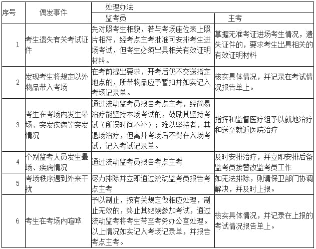 三、考场偶发事件处理办法